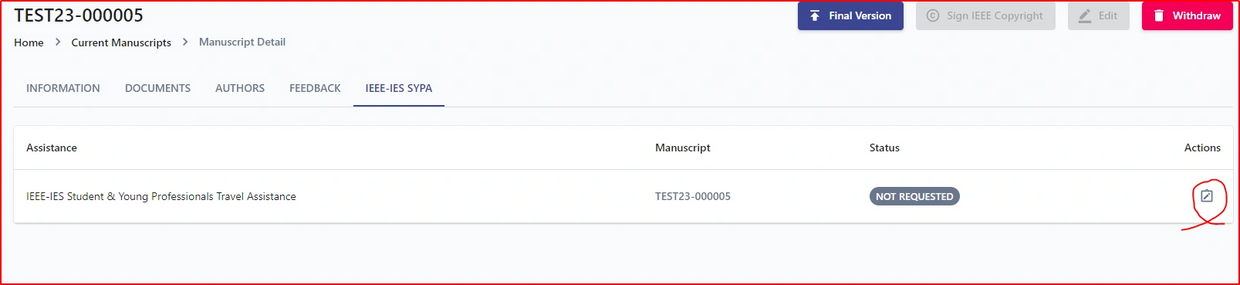 Once your paper is accepted, the IEEE-IES SYPA tab will appear, and you can apply for it as: